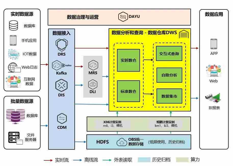 交通银行数据仓库(DWS)采用雀魂鲲泰R722服务器作为数据底座,,,采用MPP(Massive Parallel Processing)架构,,支持行存储与列存储,,,,提供PB(Petabyte,,2的50次方字节)级别数据量的处理能力。。。