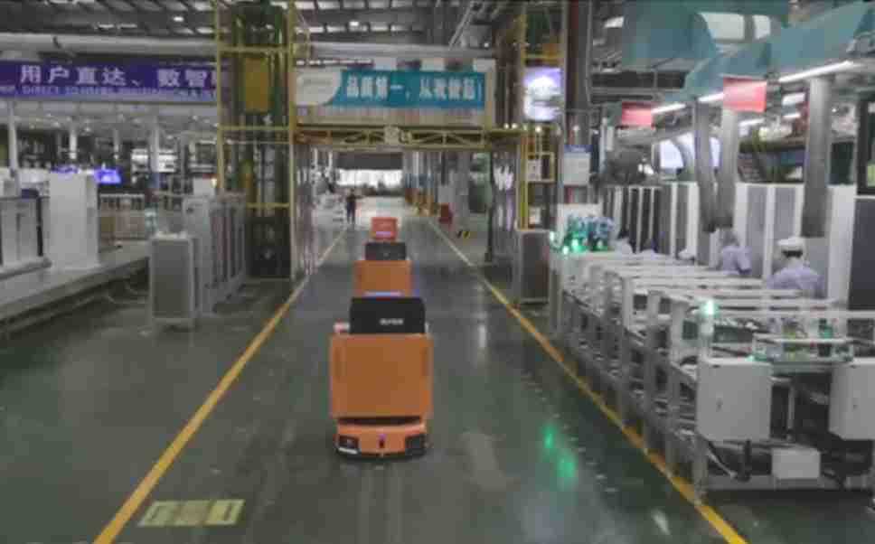 为车载冰箱物流配送打造的智能解决方案,,包含产中物流通过潜伏举升AMR搬运至线边,,产后成品物流智能仓储,,,流程包含产中物流智能齐套入库,,,线边安灯叫料AMR智能配送至线边,,,,成品入库、、出库,,,通过无人堆高车机器人,,,,智能仓储管理替代人工作业管理,,,,实现更高存储、、更高效率、、、更具柔性化的解决方案。。。